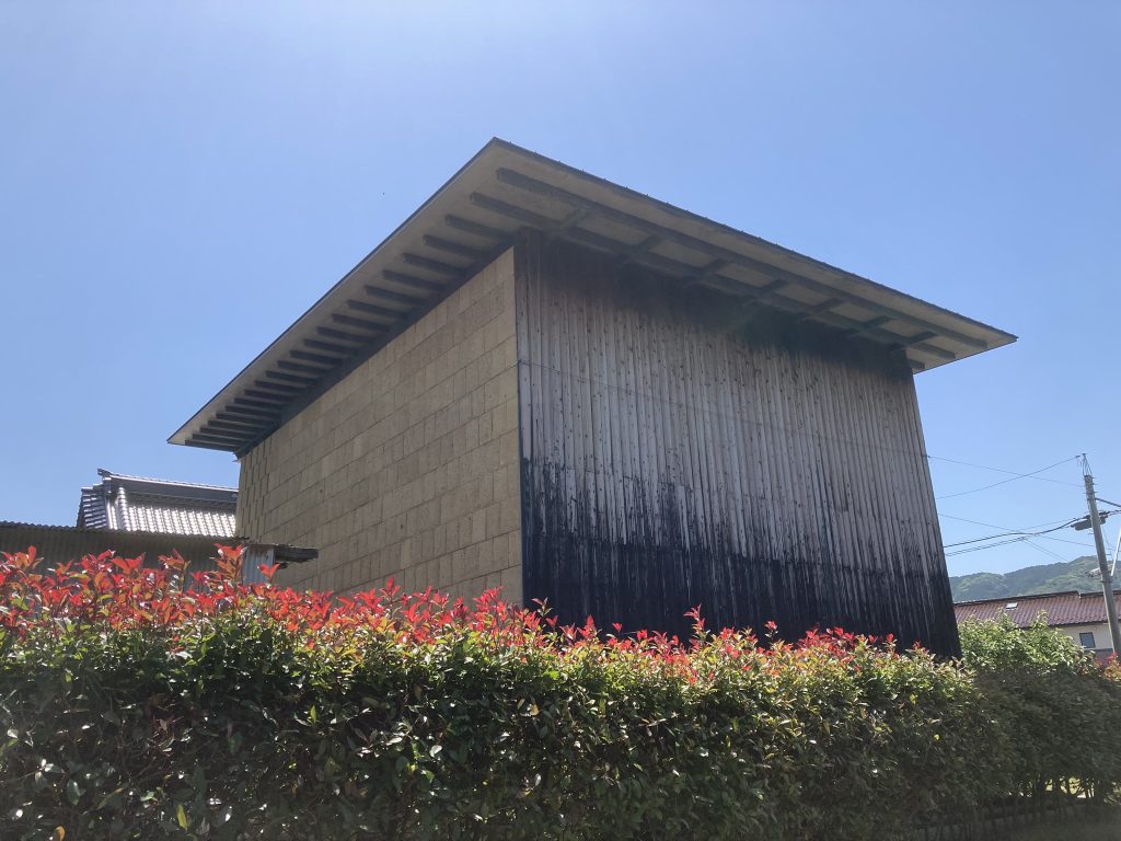 建物の背面の壁は焼杉が貼ってあり、経年変化で色も落ちていましたが時の流れを感じられていい味となっていました。